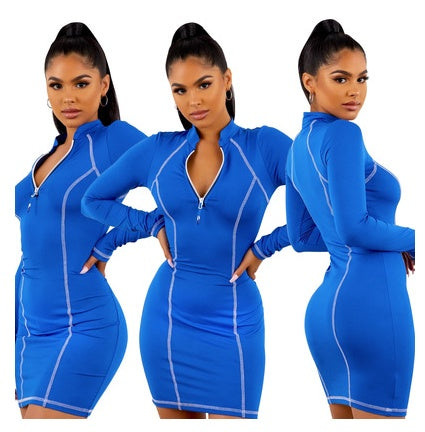 Popular elements:Contrast, tight, elastic, stand-up collar, zipper, long