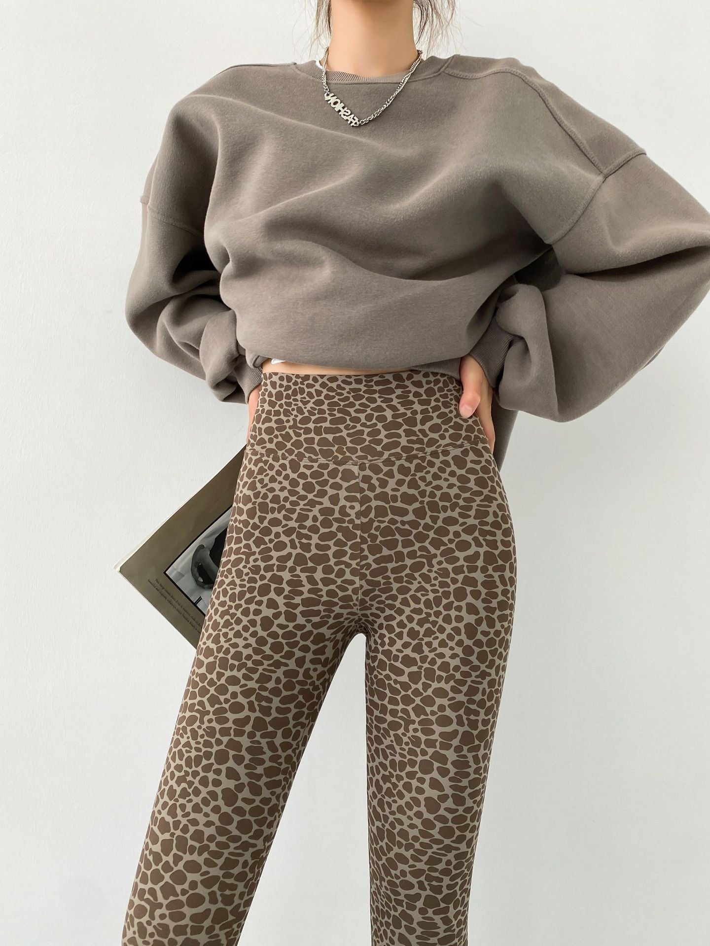 Product information : Function: keep warm Pattern: animal pattern Popular elements: painting Color: cocoa leopard print velvet, khaki leopard print velvet, cocoa leopard print wool, khaki leopard print wool. Content of main fabric: 70% (inclusive) -80% (exclusive) Pant type: tight-fitting type Size Information: Size S,M,L Packing list: Pants *1