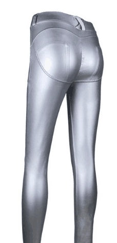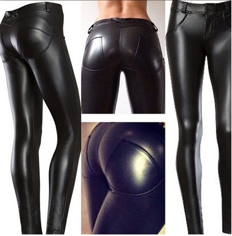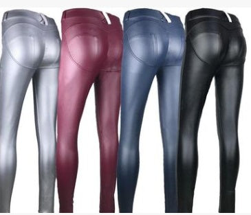 Women's Peach Hip Color High Elastic Leather Pants