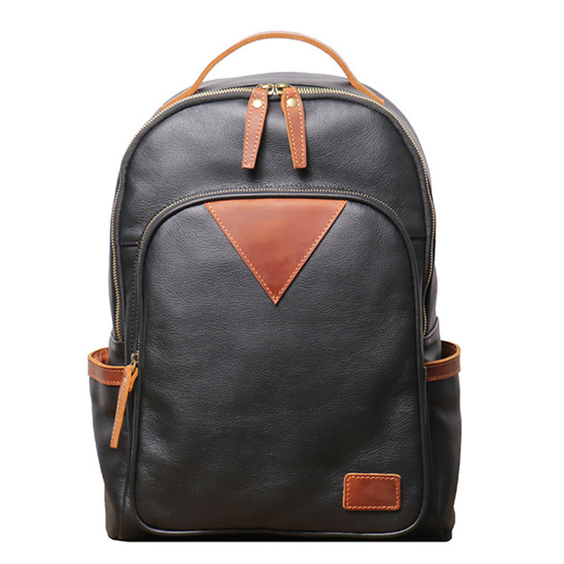 Product Information: Texture: cowhide leather Material: first layer cowhide Closing mode: cover type Pattern: Color contrast Style: Street Internal structure: zipper dark bag interlayer zipper bag computer jack Size: Length 30cm, width 11cm, height 40cm Packing list: Backpack *1