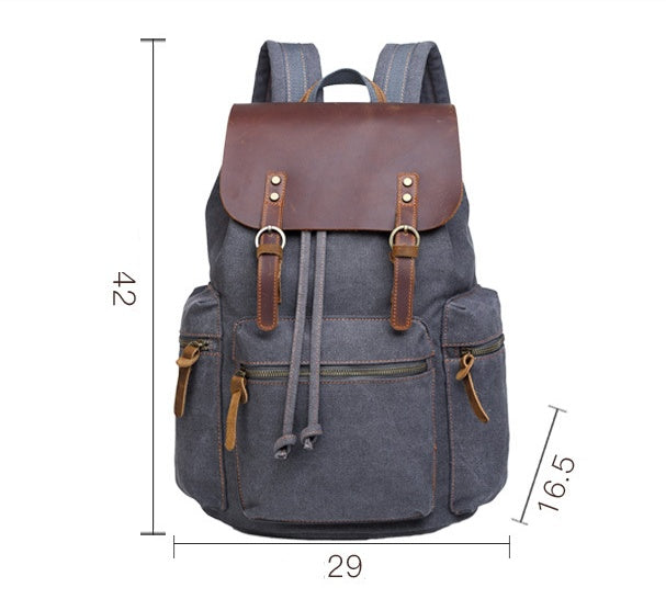 Fabric: water canvas with crazy horse skin Rib: Polyester Specifications: bag width 29CM, bag height 42CM, width 16.5CM Capacity: mobile phone, card package, key, notebook