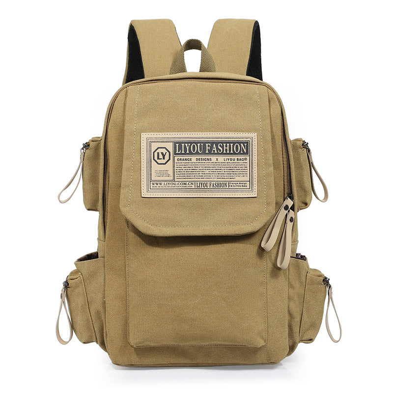 Product information: Pattern: Letters Lining texture: Polyester Color: black, khaki, Brown, Green Applicable gender: neutral/both men and women Function: Zoom Material: canvas Popular elements: sewing thread Capacity: 20-35L Size: 42X30X14cm