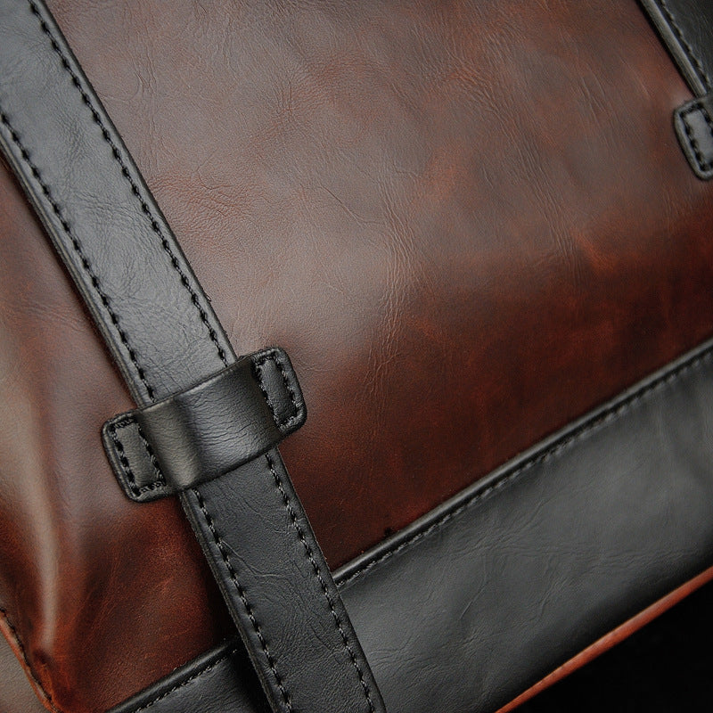Product information: Pattern: color matching Lining texture: polyester cotton Color: Brown Processing Method: Frosted Outer bag type: clamshell bag Accessory type: shoulder padded backpack Material: PU leather Popular elements: belt decoration Number of shoulder straps: double connector Lifting parts: soft handle Applicable gifts: business gifts Function: wear-resistant Hardness: medium Suitcase shape: square vertical model Whether there is a pull rod: None Bag internal structure: file bag, mobile phone bag, zipper change bag Style: Casual Capacity: below 20L Scenario: Travel Size: 28.5cm long, 37.5cm high, 10.5cm thick