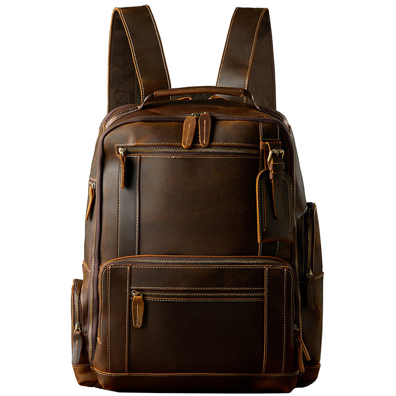 Product information: Fabric: Imported first layer cowhide (Crazy Horse) Texture: thick, natural and rough Internal capacity: 17 inch notebook Color: Dark brown Lower width 32 high 46 thick 14cm Internal structure: document bag, mobile phone bag, zipper hidden bag, computer position on the front zipper bag Side bag Main bag