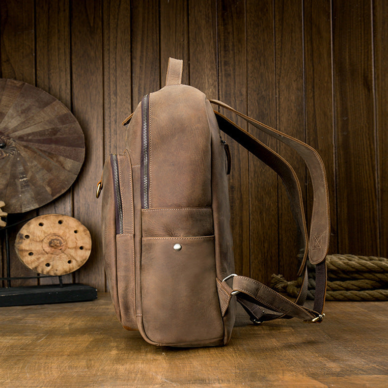 Bag size: medium Capacity: 20L or less Internal structure of the bag: ID bag, mobile phone bag, zipper pocket, computer pocket Opening method: zipper Applicable gender: male Material: Leather Cortex features: first layer cowhide Whether with lock: No With or without rain cover: None Function: burden reduction Processing methods: soft surface Hardness: medium to soft pattern: plain Applicable gift-giving occasions: housewarming Plus style: retro style Lining texture: cotton Strap root number: double root Popular elements: car suture Carrying parts: soft handle Outer bag type: open pocket Bag shape: bucket type With or without lever: No