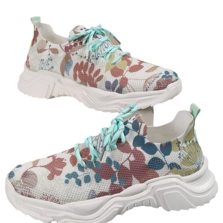 Flyknit Casual New Running 3D Printed Flowers Slip-on Light Running Shoes