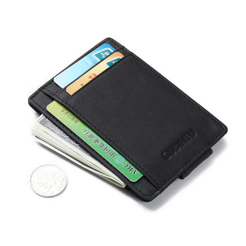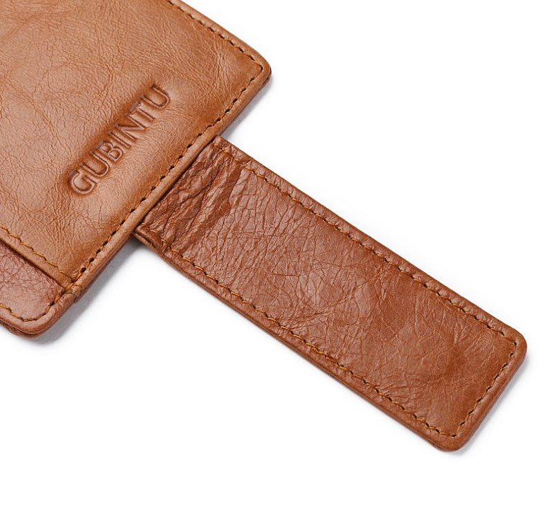 [Features]: Foreign trade style, style high-end fashion simple, soft and comfortable top layer cowhide anti-magnetic gold clip.