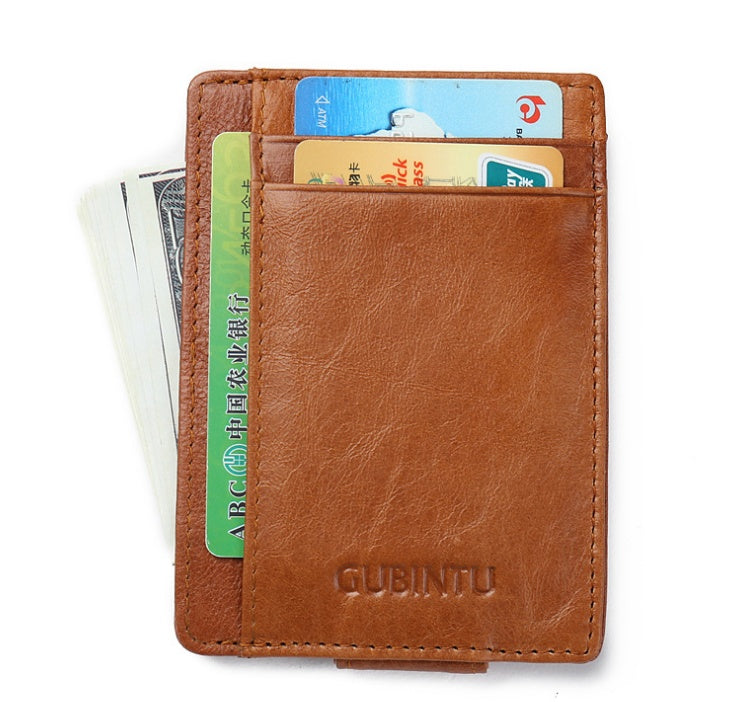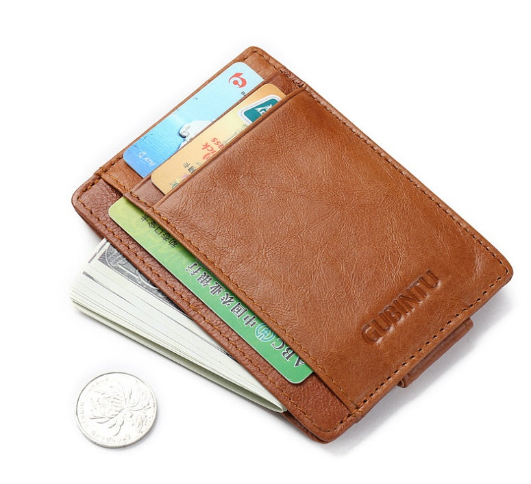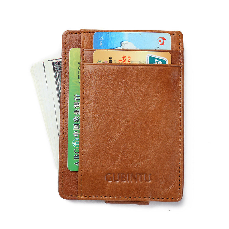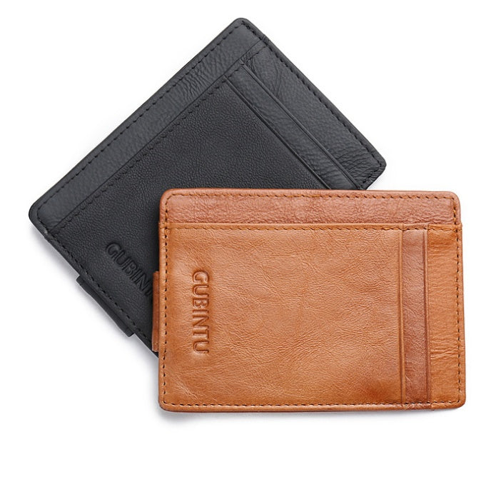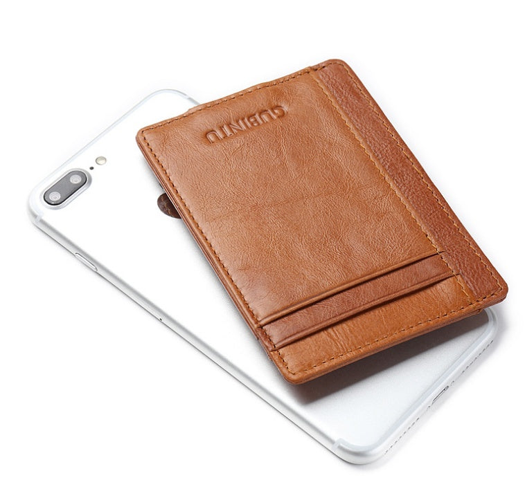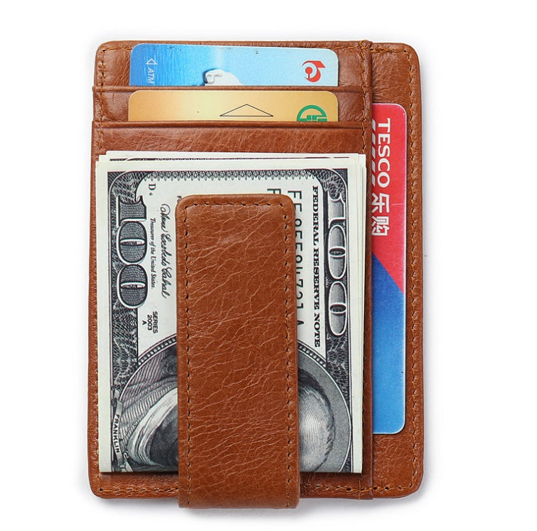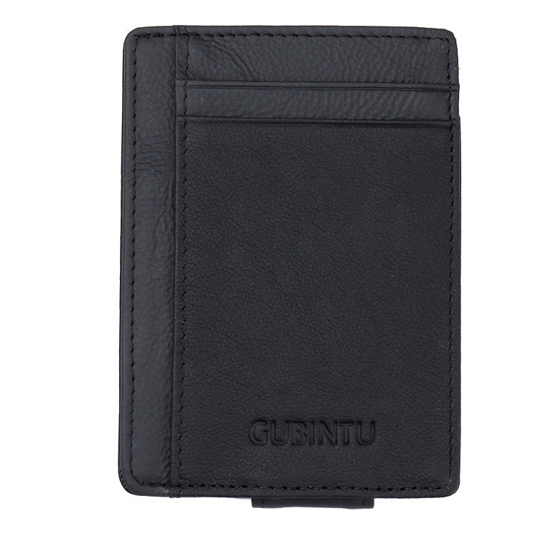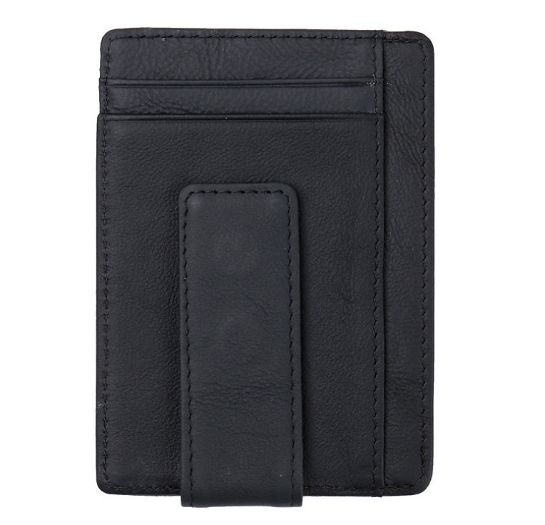 Fashion Men Magnet Money Clip Thin Credit Card Holder Genuine Leather Front RFID Pocket Wallet Blocking