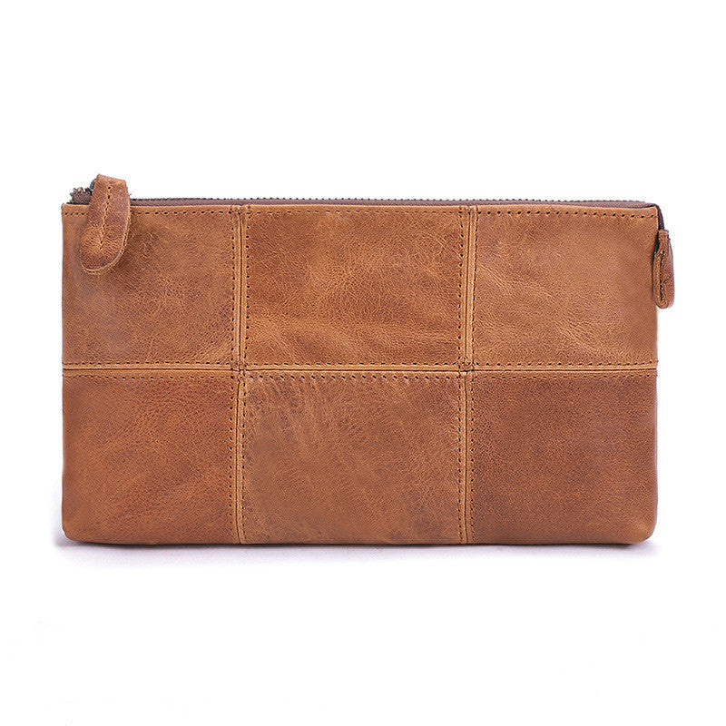 Style: Clutch Leather: First layer cowhide Internal structure: Main pocket"l Zipper pocket*1 Compartment pocket"1 Size: L: 24cm/H: 14cm/T: 3cm