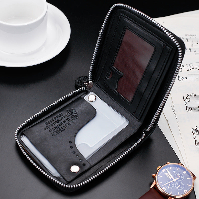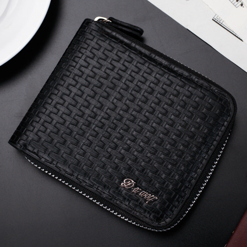 Short Three-sided Zipper Woven Pattern Wallet Card Holder Coin Purse