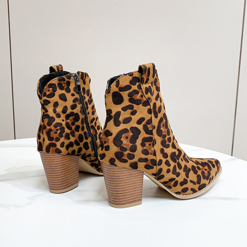 European And American Flat Leopard Print Pointed-toe Side Zip Women's Casual Pumps
