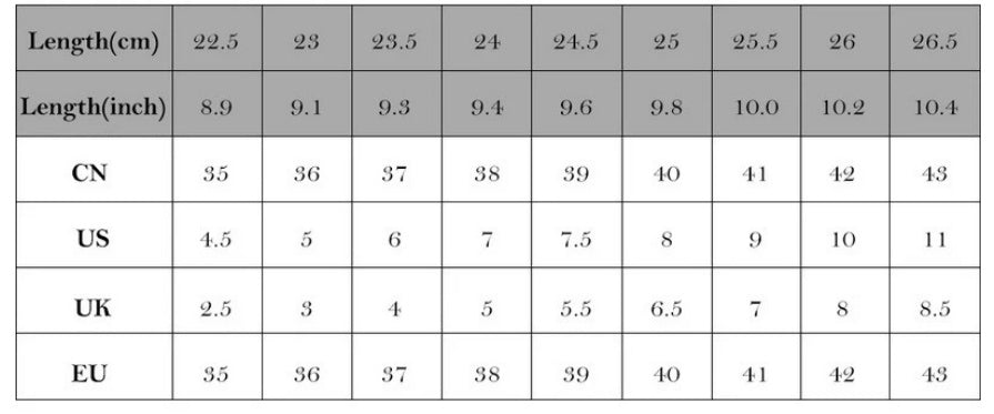 Size: 36, 37, 38, 39, 40, 41, 42, 43