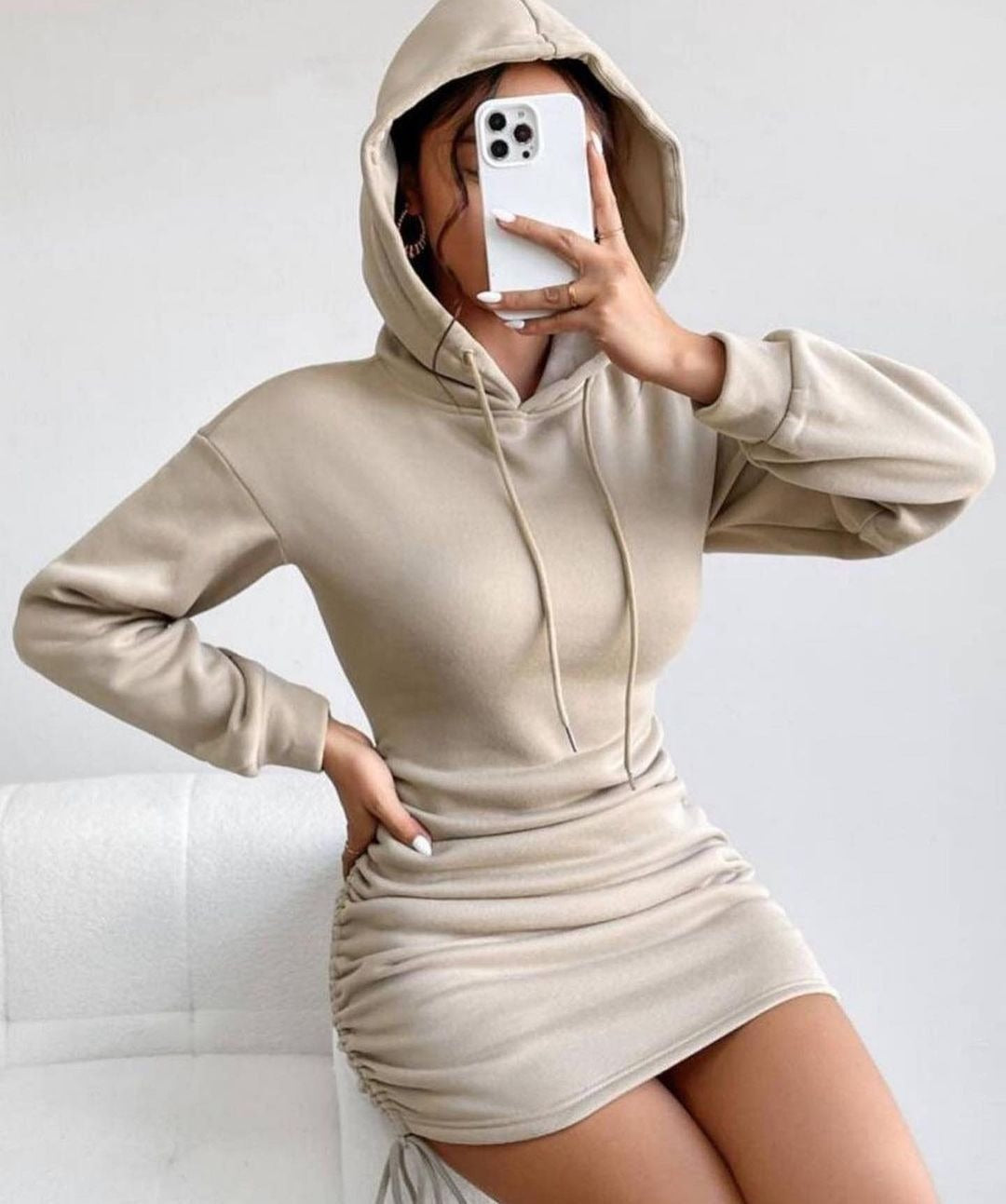 Product information: Color: gray, black, apricot Sleeve type: regular sleeve Main fabric composition: Polyester (polyester fiber) Waist type: high waist Size: S,M,L,XL Popular elements: lace-up Style: pullover
