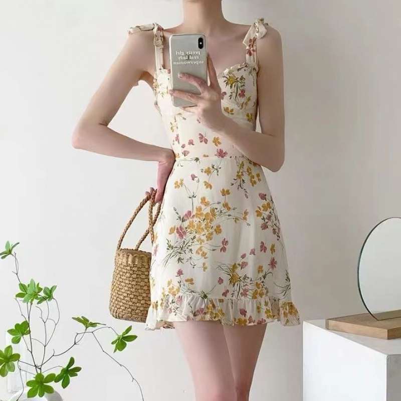 Color: small floral suspender dress custom original fabric, lemon flower suspender skirt custom original fabric