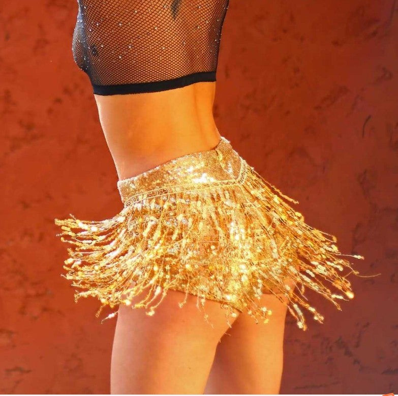 Hot Doof Babe - Tassel Sequins Hot Pants