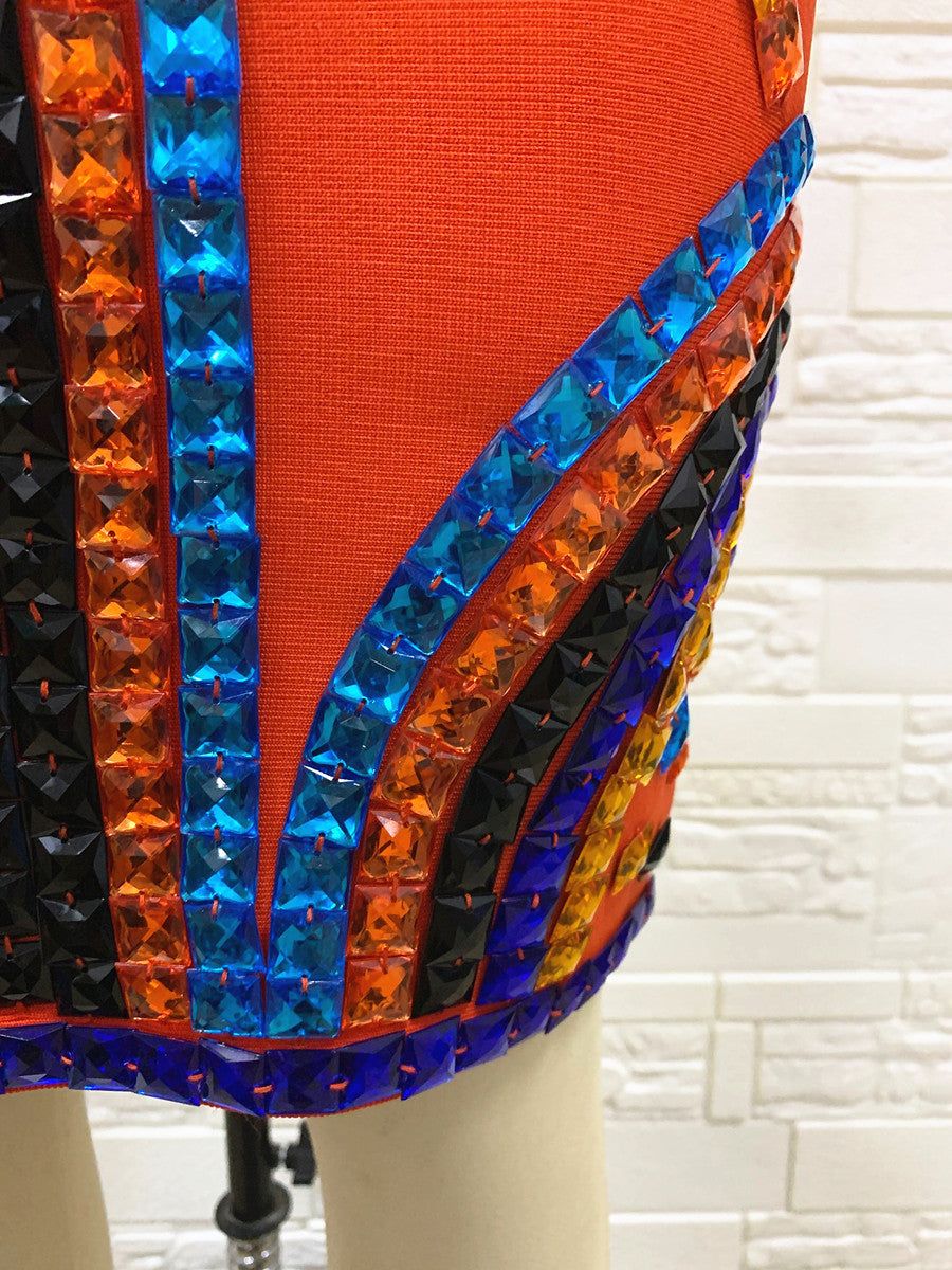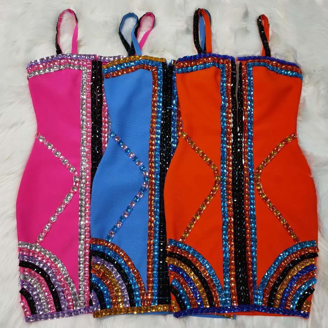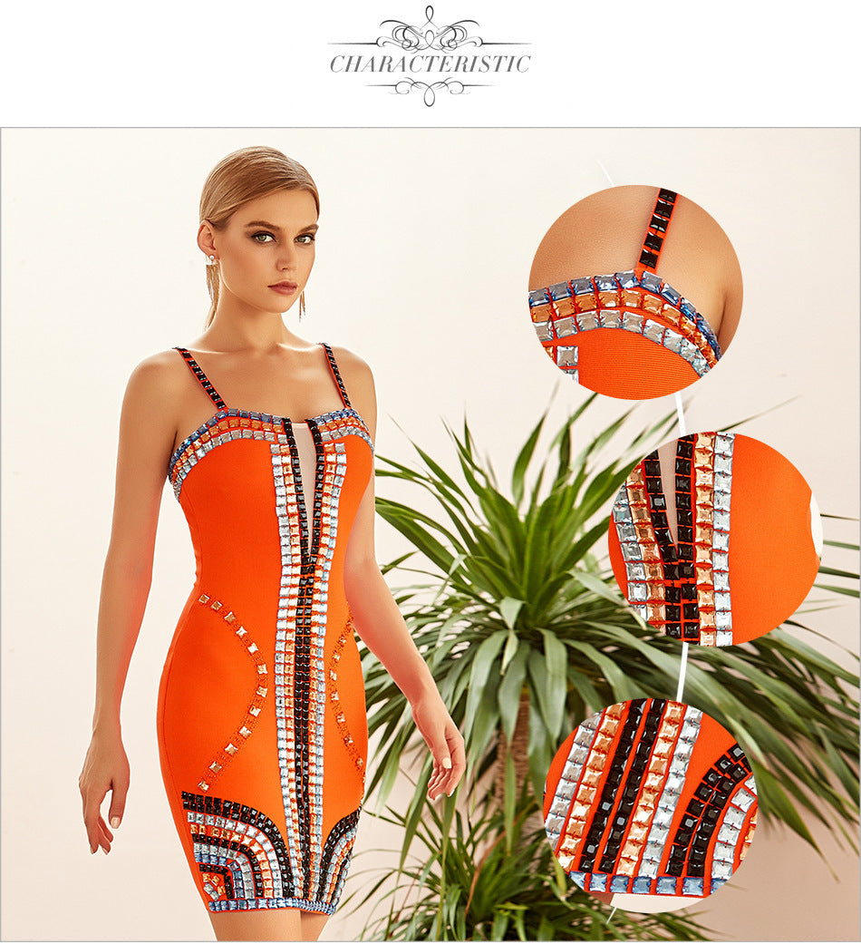 Name: Sleeveless women's luxury diamond bandage dress