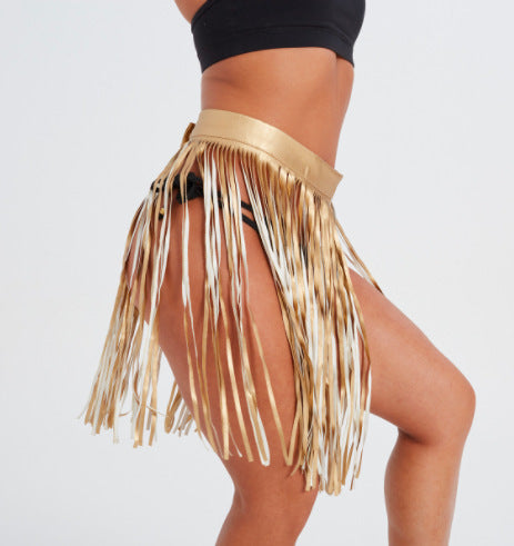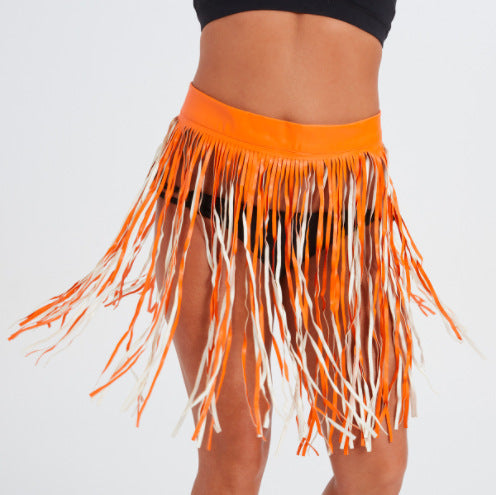 Product information: Pattern: solid color Fabric name: PU leather Skirt type: patchwork skirt Color: black, orange, gold, silver Size: average size Style type: temperament commute Skirt length: short skirt Skirt Category: skirt Popular elements: Tassel