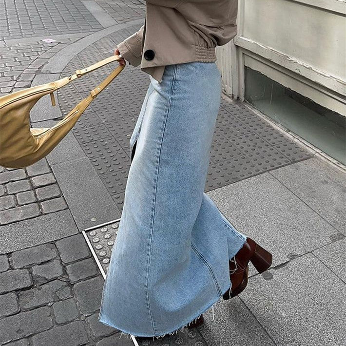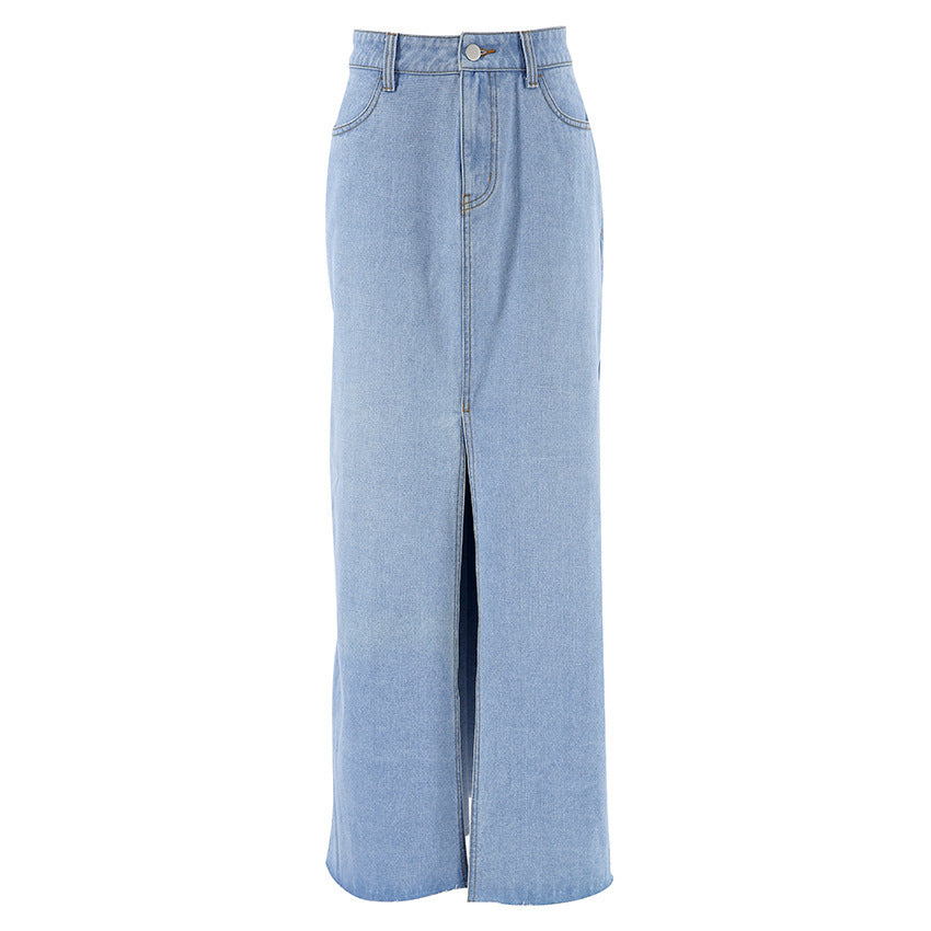 Product information: Pattern: solid color Fabric name: Washed denim Skirt type: denim skirt Color: blue Main fabric composition: Spandex Size: S,M,L Style type: temperament commute