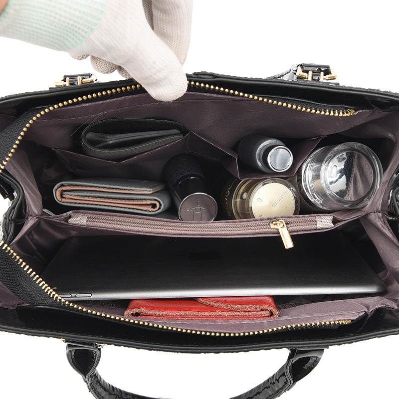 Style: Women's shoulder bag Fabric texture: PU Bag shape: horizontal square Trendy luggage styles: Tote bag Opening method: zipper Popular elements: car suture Strap root number: single pattern: plain