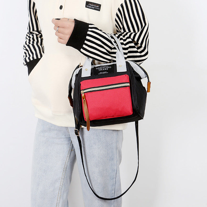 Product Information: Product Category: Mommy Bag Application scenario: household storage Bag interior structure: zipper dark bag Number of straps: two Material: Oxford cloth Style: Casual Processing method: printing Open cover: zipper Luggage trend: Mommy bag Pattern: Solid color Popular element: car stitching Color: Red, blue, black, rose, gray, cyan, light blue, light pink,pink red white black, blue white red Red green blue Packing List: 1* handbag