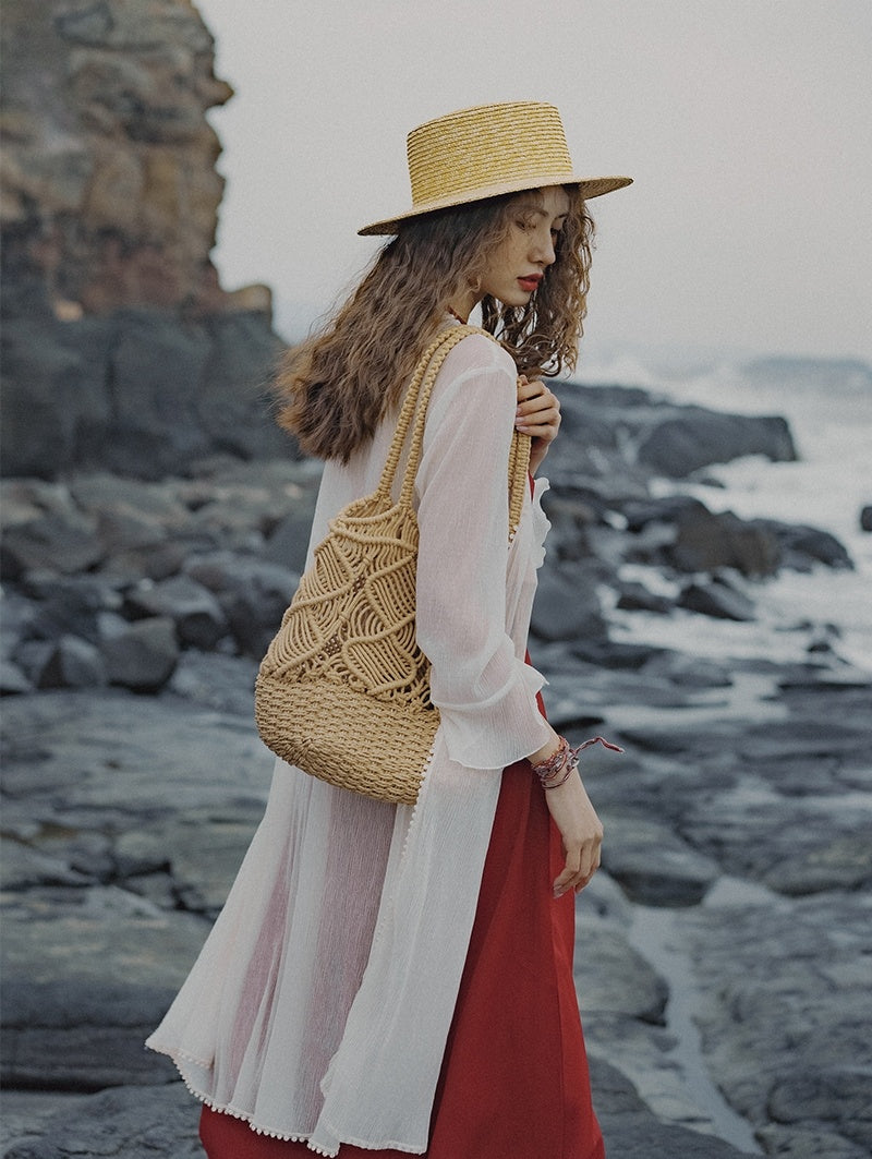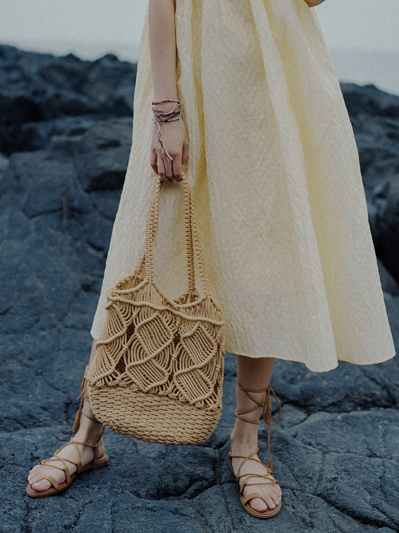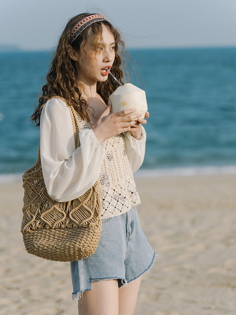 Texture: Grass Closing method: open Pattern: Solid color Style: Sweet Lady Popular element: hollowed out Color classification: khaki Hardness: Soft Style: Shoulder bag
