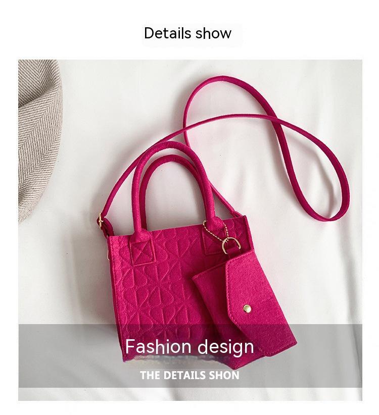 Product information: Lining texture: Nylon Color: khaki, Rose red, brown, black, blue, orange Outer bag type: Sandwich pocket Hardness: soft Material: Felt Suitcase shape: square vertical model Bag internal structure: zipper change bag Number of shoulder straps: Single Yes/No lining cloth: None