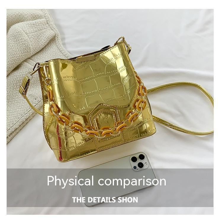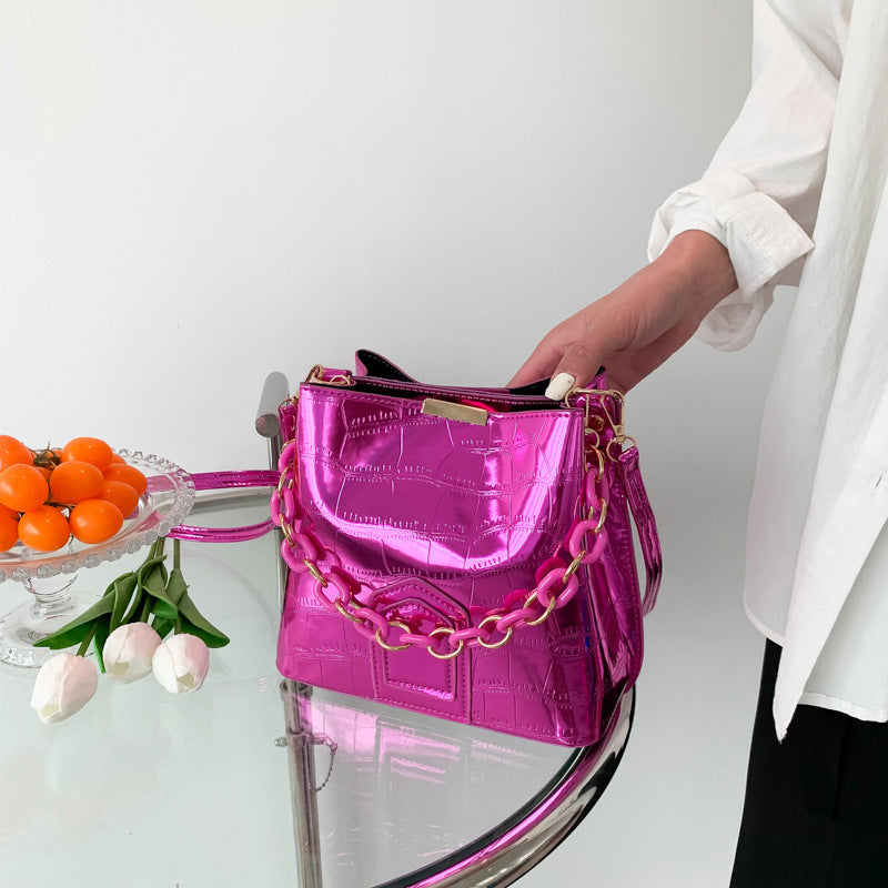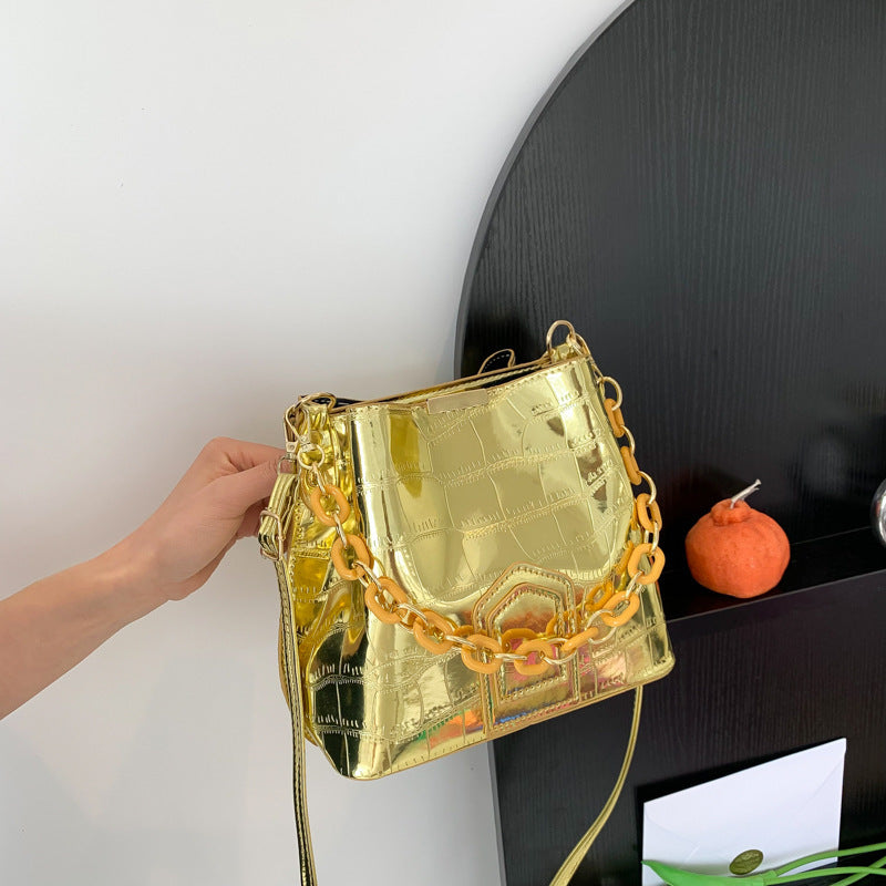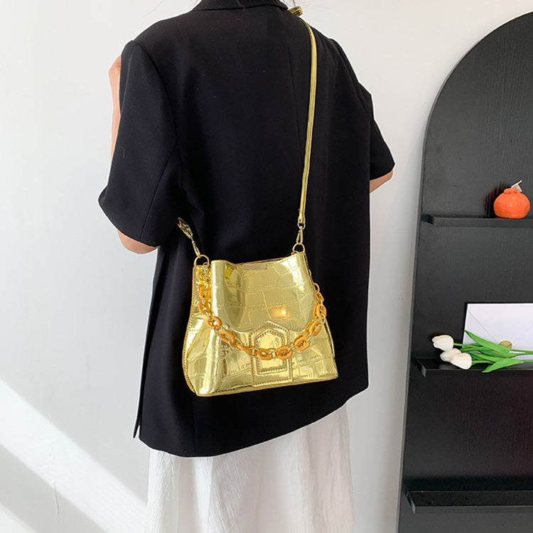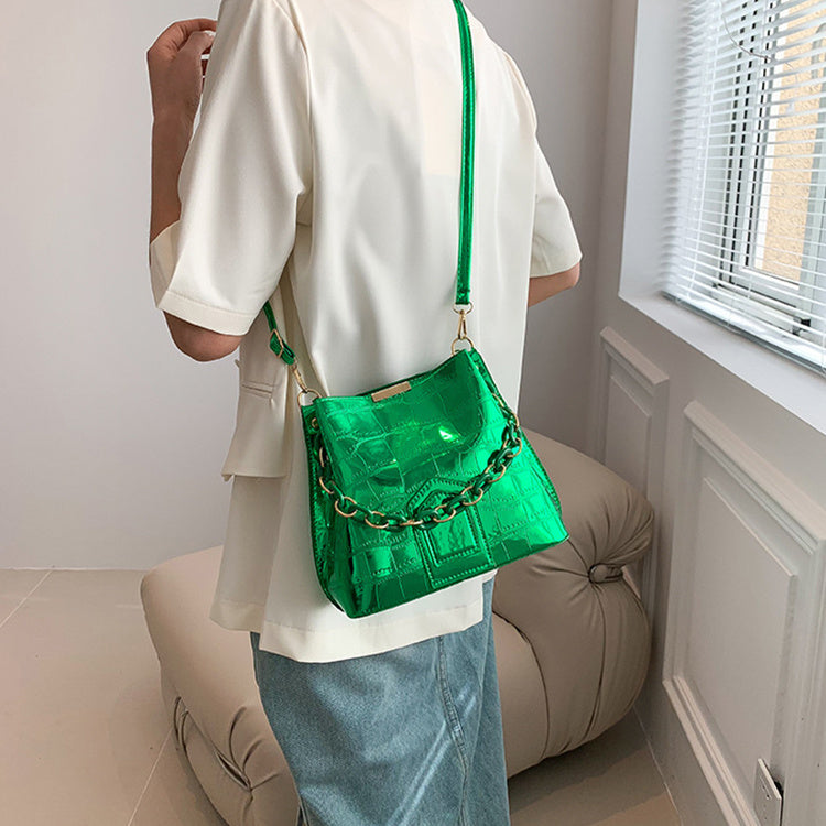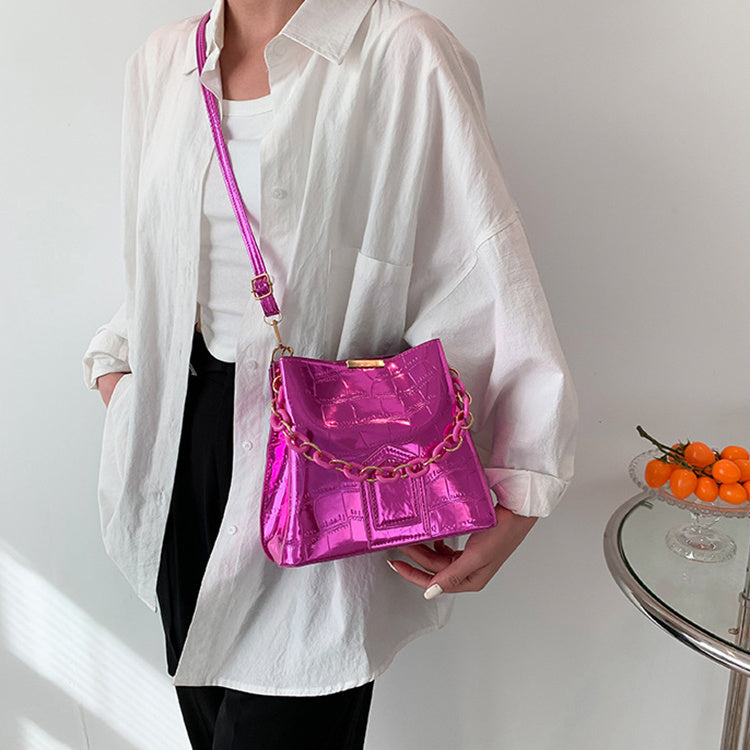Laser Chain Handbag Large Capacity Crossbody Bucket Bag