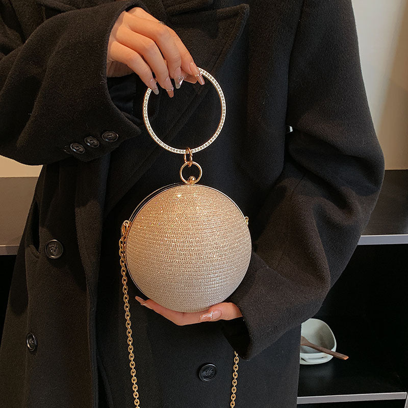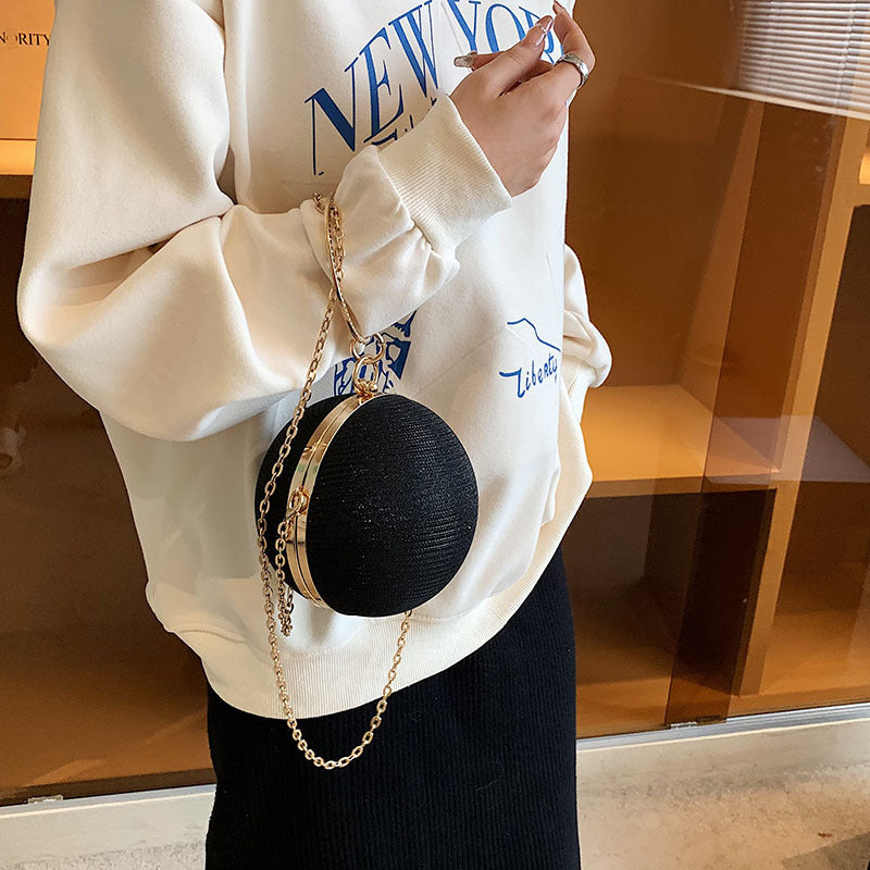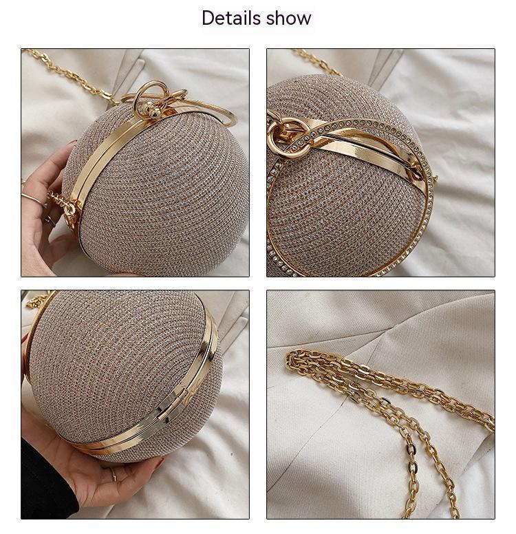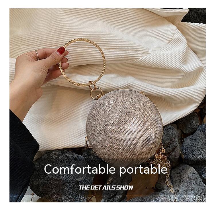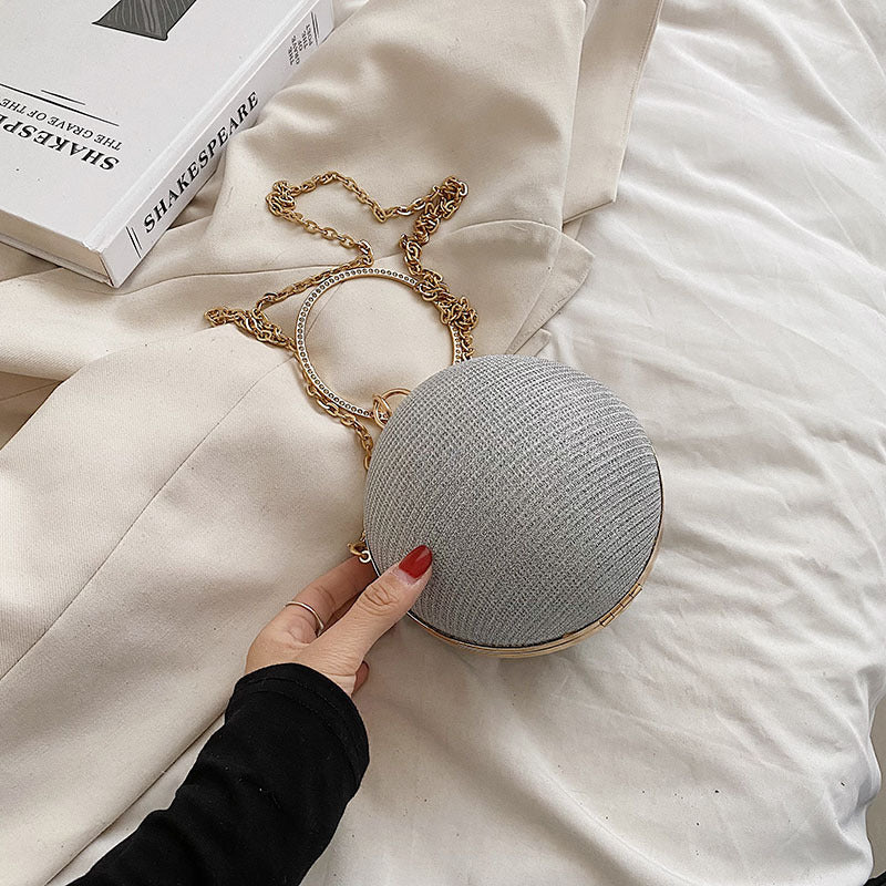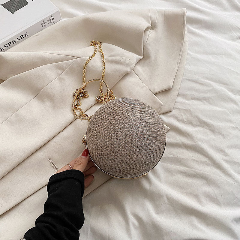 Product information: Pattern: solid color Color: black, gold, silver Material: PVC Popular elements: sequins, chains Suitcase shape: round Bag internal structure: Sandwich zipper bag Style: cross-border Fashion