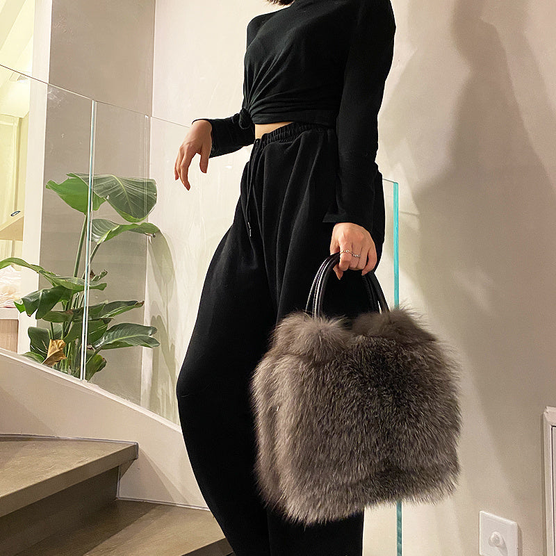 Product information : Texture: fox fur Popular elements: stitching Shoulder strap style: single Style: handbag Type of lifting parts: hard handle Color: Cross Fox, Silver Fox, White Fox Size Information: Size: 30cm long and 23cm high Packing list: Shoulder messenger bag of bill of lading *1