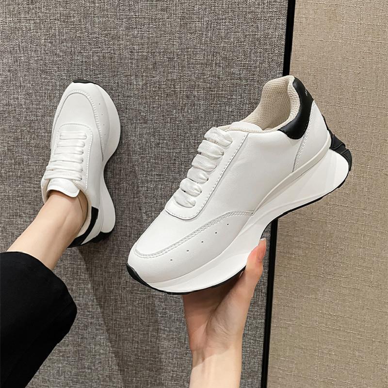 Leather Sports Casual Shoes White Shoes Four Seasons Raise The Bottom Dad Shoes