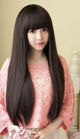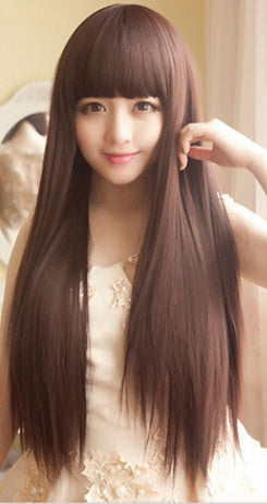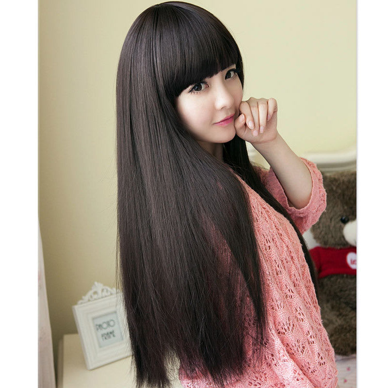 Product information: Style: Korean style Applicable people: Ladies Hair material: high temperature wire Applicable skin color: any skin color Applicable face shape: any face shape Efficacy: change hairstyle instantly Wig hairstyle: long straight hair with bangs Cosmetic features: hair styling Color: natural black with bangs, dark brown with bangs, light brown with bangs, flax yellow with bangs, black with bangs, dark brown with bangs, light brown with bangs, linen with bangs
