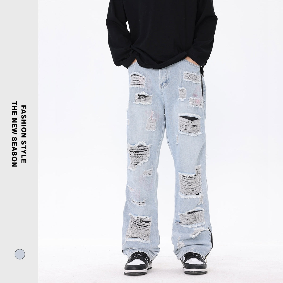 Product information: Color: light blue A181 Pants length: trousers Waist Type: Mid waist Suitable for people: Teenagers Size: S,M,L,XL,XXL Fly opening: zip placket Style: Basic Thickness: ordinary Fabric name: Cotton Applicable scenarios: Leisure Main fabric composition: Cotton Pants type: Straight type Suitable season: Four Seasons Style: Street