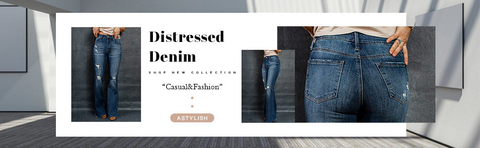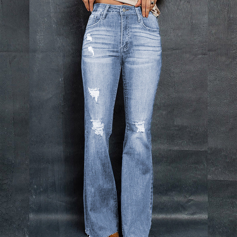 European And American High Waist Slim Denim Washed And Frayed Wide Leg Pants Trousers