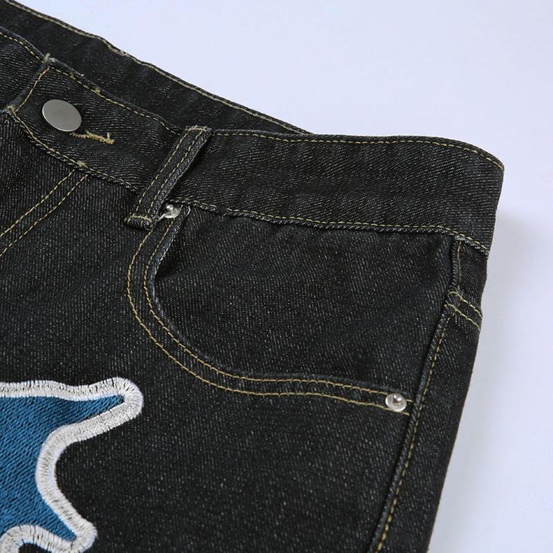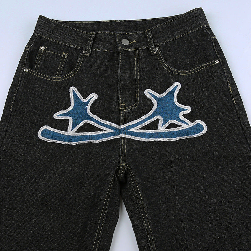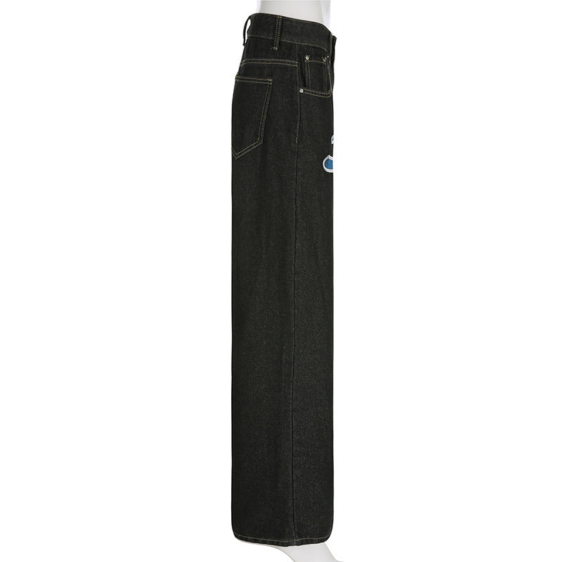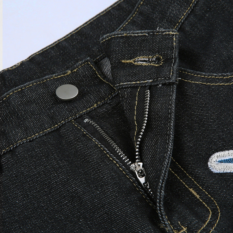 Product information: Color: Black Pants length: trousers Size: S,M,L Fabric name: denim Main fabric composition: Cotton Craft: Embroidery