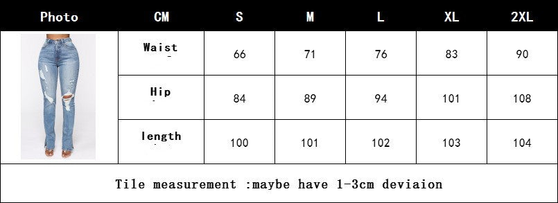 Split Jeans Women's, Blue Water Washed Hole High Waist