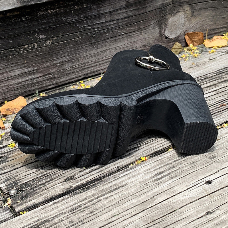Chunky Heel Plus Size Side Zipper Round Head Ankle Boots High Heel Martin Boots