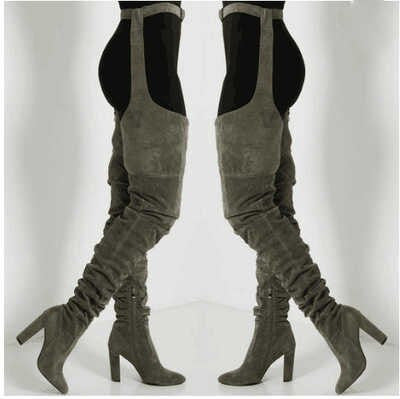 European And American Style Solid Color Suede Fashion Pointed Personality Chunky Heel Over The Knee Women's Fashion Boots