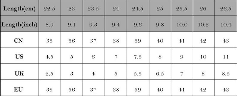 Size: 36, 37, 38, 39, 40, 41, 42, 43
