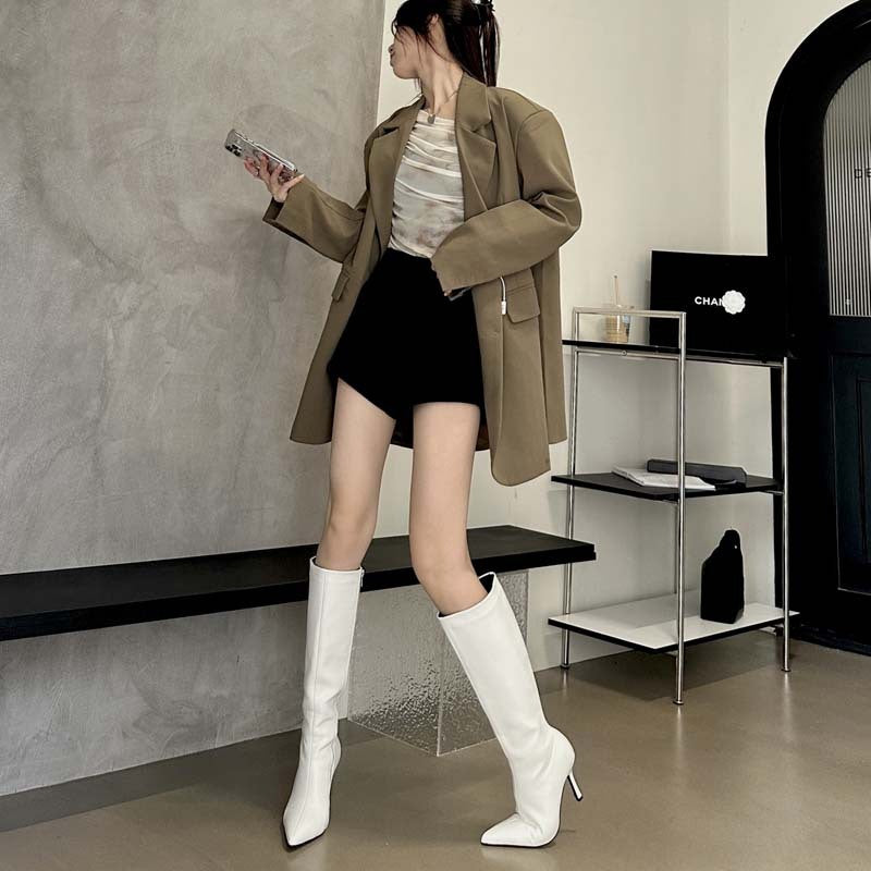 Product information: Lining material: pu Color: white, black Heel height: super high heel (above 8CM) Length of socks: high cylinder Heel shape: stiletto heels Size: 35, 36, 37, 38, 39 Sole material: rubber Toe bracket shape: square head Shoe Upper material: artificial pu Style: European and American