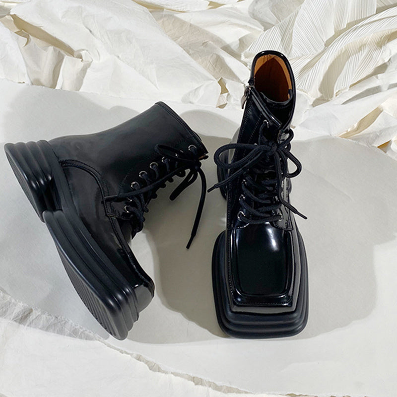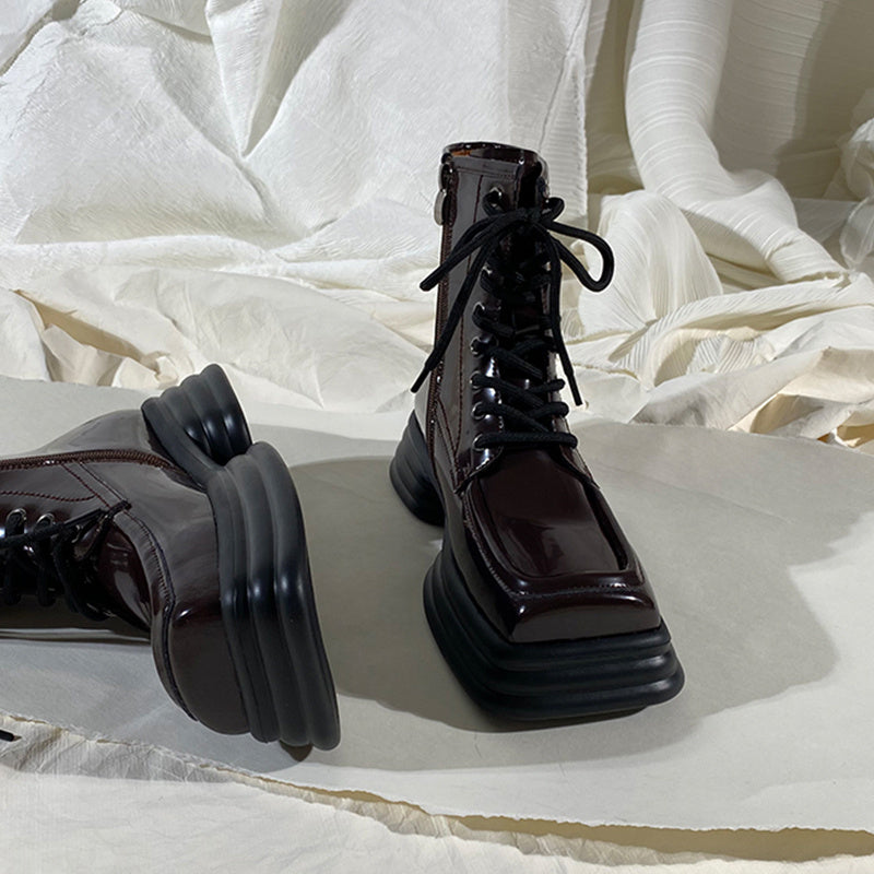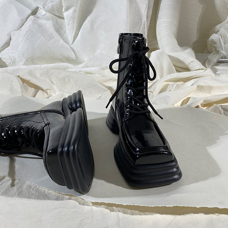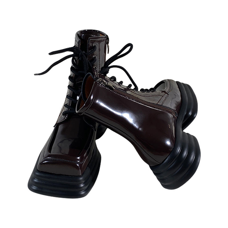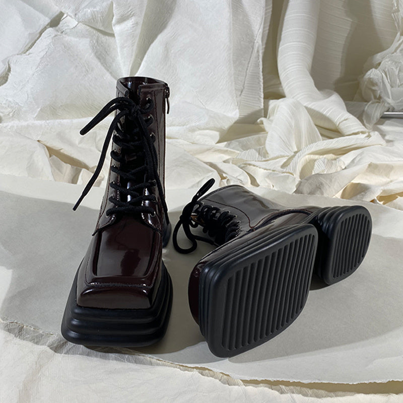 Product Information: Closing method: side zipper Cylinder height: short cylinder Popular element: Cross strap Heel height: Mid heel (3-5cm) Toe style: square toe Sole material: rubber Leather features: patent leather Insole material: top layer cowhide Shoe production process: adhesive shoes
