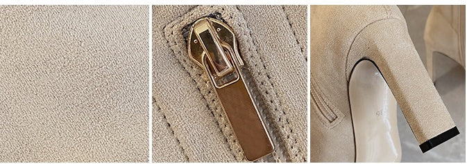 Product information: Product Category: Socks and Boots Applicable age: adult Upper material: cloth Sole Material: Rubber Applicable gender: neutral/male and female Style: Europe and America Toe shape: pointed Heel shape: thick heel Heel height: super high heel (above 8CM) Popular elements: hollow Function: Keep warm Tube height: over the knee Thickness: thicker Wearing style: sleeve/overshoes Pattern: plain Suitable season: winter Size information Size: 34,35,36,37,38,39,40 Packing List: Boots x1 pair