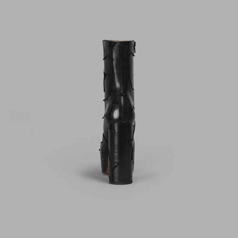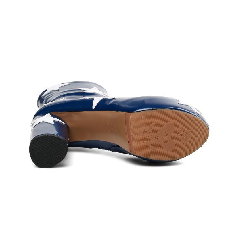 Round Head Chunky Heel High Heels Side Zipper Height Increasing Women's Boots