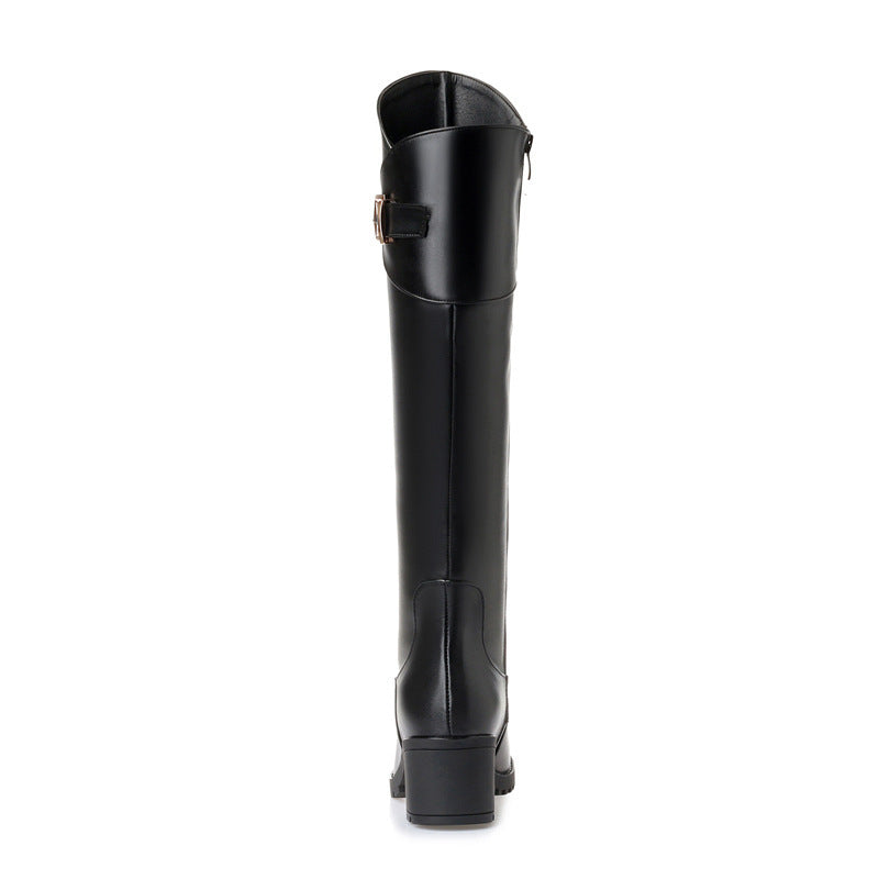 Round Head European And American Sleeve Knight Boots Fleece-lined