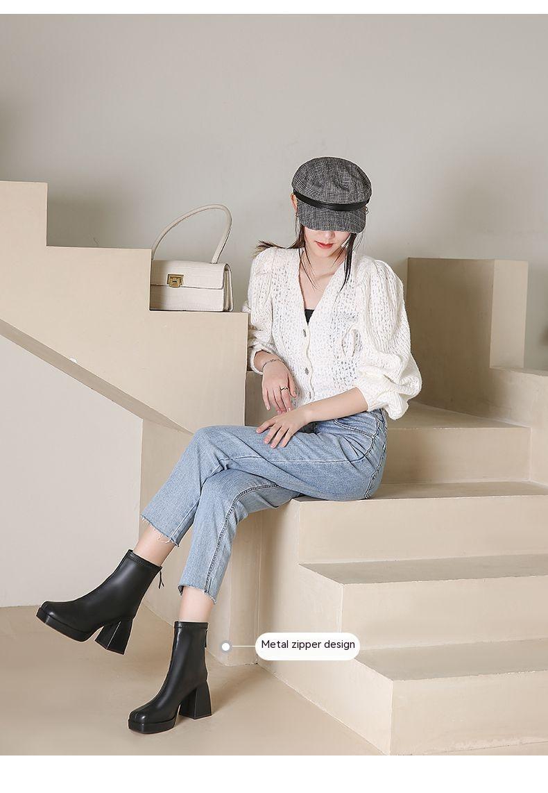 Product information: Pattern: solid color Lining material: Cotton Color: black, khaki, beige Heel height: high heels (6-8CM) Socks length: low tube Heel shape: short stout heel Size: 35, 36, 37, 38, 39, 40 Sole craft: viscose Sole material: rubber Popular elements: sewing thread Thickness: ordinary thickness Toe bracket shape: square head Shoe Upper material: artificial pu Wearing method: back zipper Applicable Gender: Female Applicable age: Adult Suitable season: winter and autumn Style: Korean style