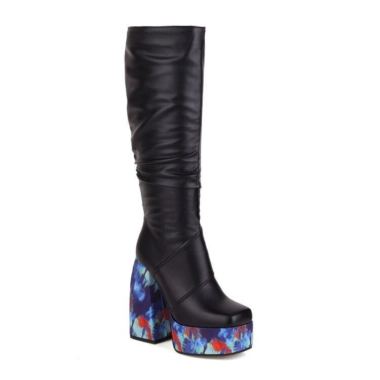 Closing method: side zipper Pattern: Solid color Style: Europe and America Cylinder height: high cylinder Color classification: green, blue, black Boots Product Name: Fashion Boots Toe style: square toe Heel style: thick heel Sole material: rubber upper Leather features: trimmed leather shoes Production process: adhesive shoes Insole material: artificial short plush Upper material: PU Boot surface material: PU Inner lining material of boot barrel: cotton