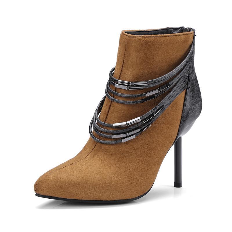 Applicable age: adult Upper material: artificial PU Sole Material: Rubber Applicable gender: female Style: European and American Toe shape: pointed Heel shape: super high heel (above 8CM) Popular boots: Martin boots Tube height: low tube Thickness: Normal thick Wearing style: back zipper Insole material: artificial wool Inside material: cotton Inside material of the boot shaft: artificial short plush Boot material: PU