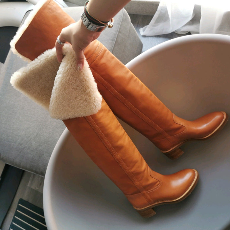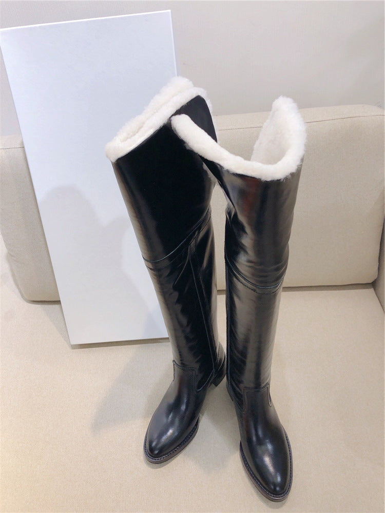 Product information : Material: rubber sole Height: over the knee Thickness: thickening Pattern: solid color Material inside the boot: artificial short plush. Color: tan (super-migration skin), black (super-migration skin) Size Information: Sizes: 35,36,37,38,39,40