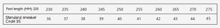 Size: 35, 36, 37, 38, 39, 40, 41, 42, 43, 44, 45
