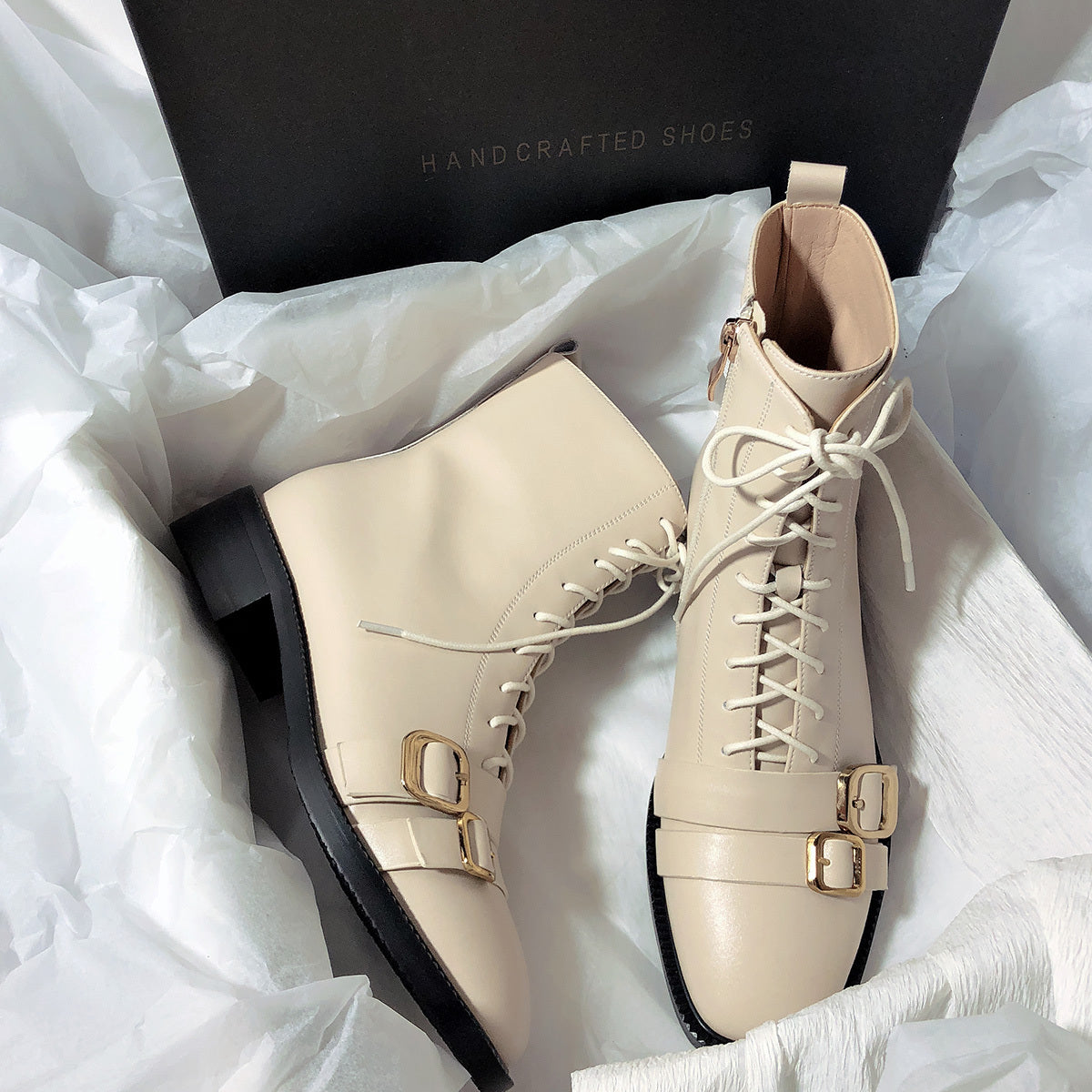 Product information: Closing method: sleeve Cylinder height: short cylinder Color: black single lining, white single lining, black velvet lining, white velvet lining Style: square head Material: head layer pig skin Size information: Size: 33 34 35 36 37 38 39 40 Packing list: Boots X1Pair