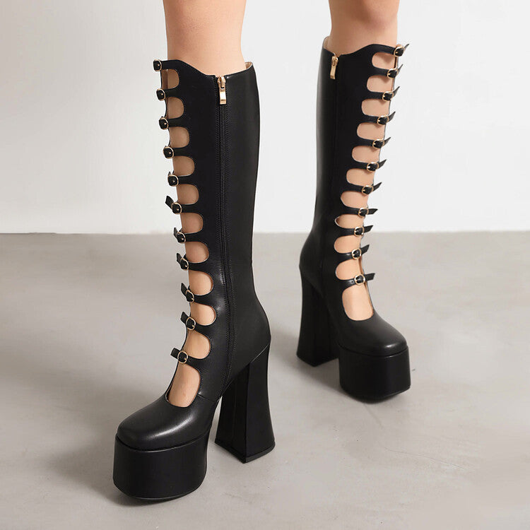 Product information : Closure mode: rear zipper Color classification: black Toe style: square head Popular elements: waterproof platform belt buckle Insole material: PU Sole material: rubber Size Information: